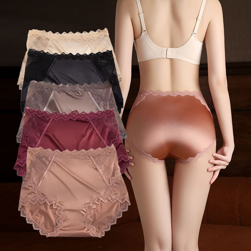 Manufactory Direct Breathable Underwear Fat Women in Satin Panties Silk Satin High Waist Panties